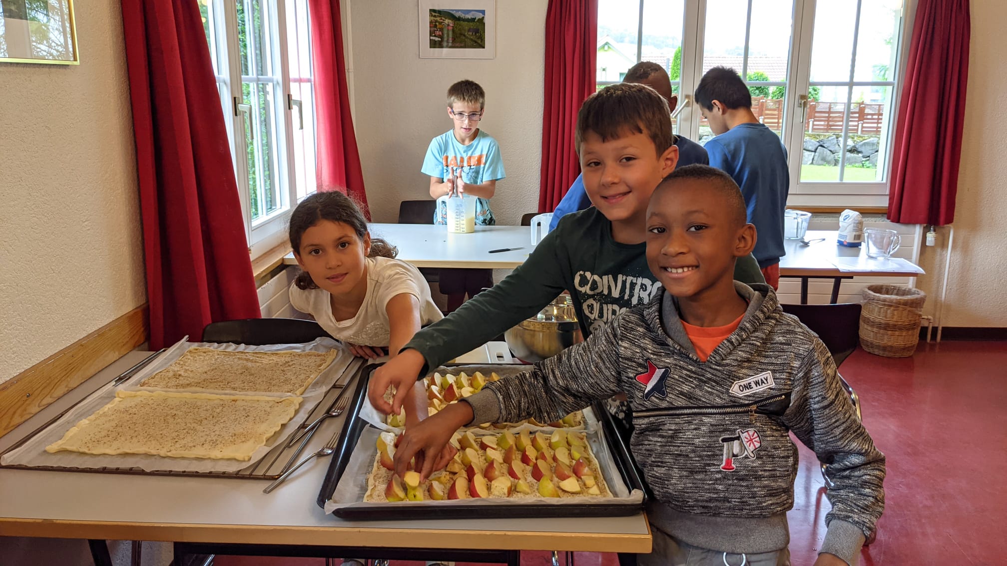 Mittags gab es dann Apfel- und Aprikosenwähe. Während der anschliessenden Mittagsruhe haben wir ein Hörbuch gehört, Bieberbande gespielt oder geschlafen.