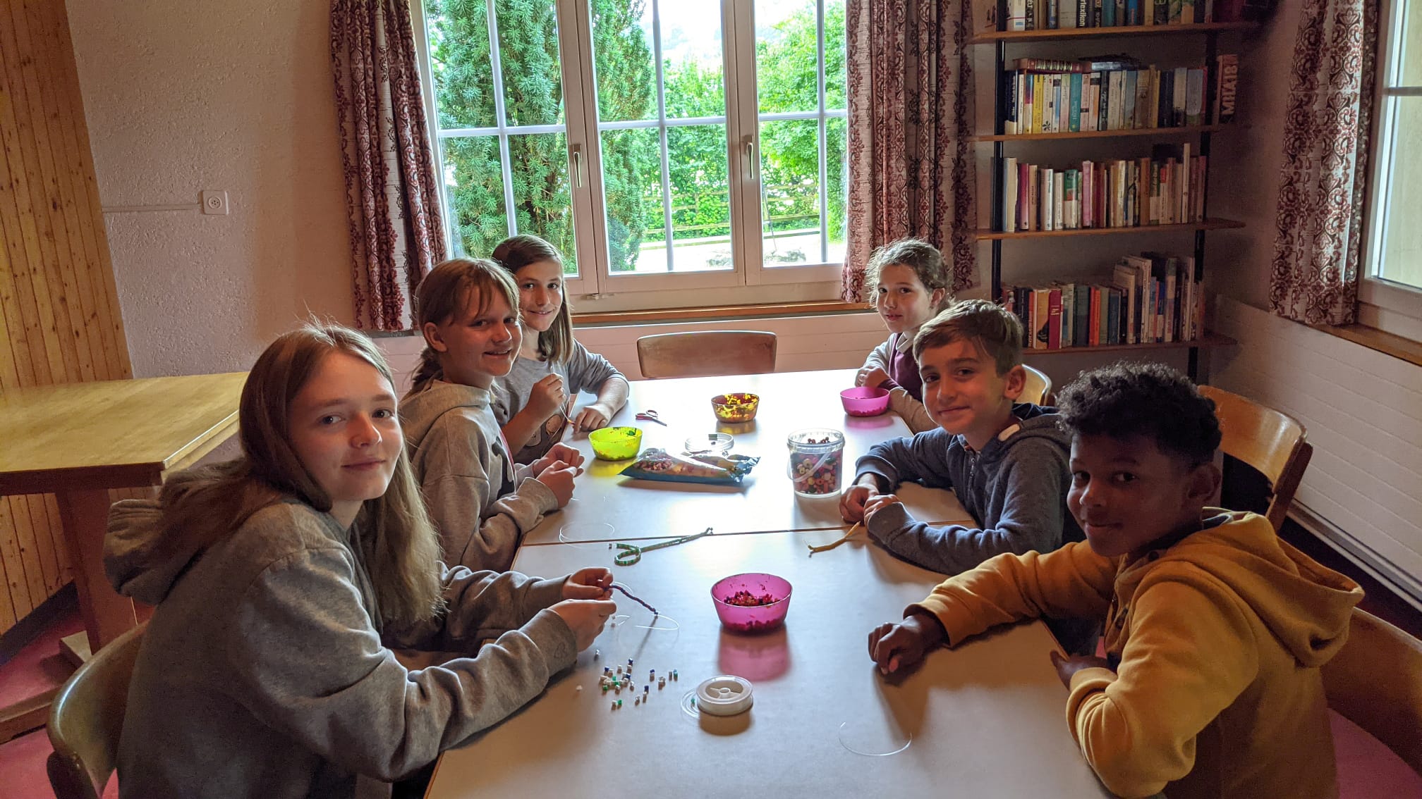 Am Morgen haben wir Bastelposten gemacht. Man konnte Gipsmasken machen, Schmuck basteln oder helfen die Wähe für das Mittagessen zu machen. Danach sind wir noch auf den Spielplatz in der Nähe des Lagerhauses gegangen und haben Fangball sowie Fussball gespielt.