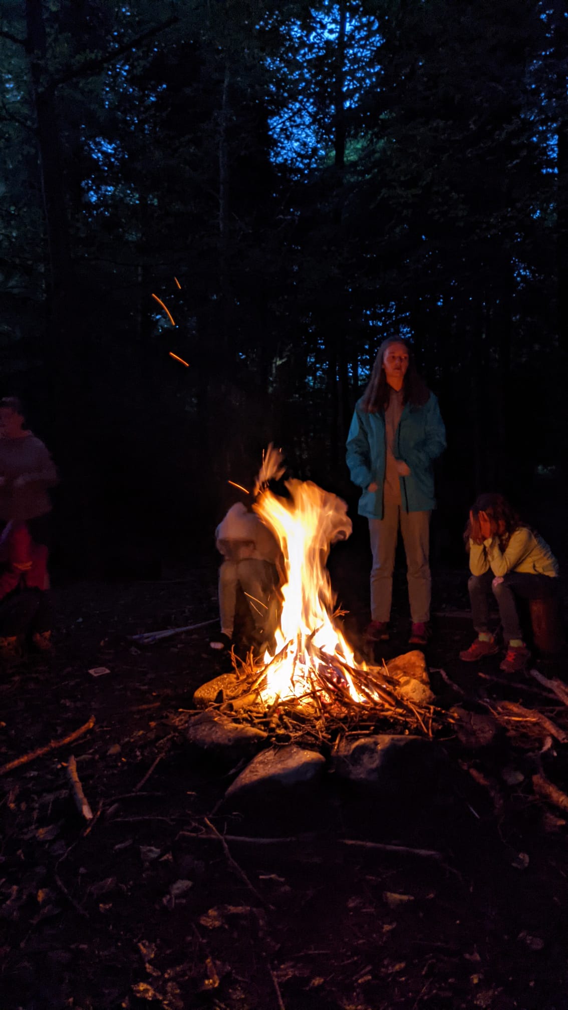 Als nächstes haben wir wieder hören dürfen, wie es in unserem Buch weitergeht. Da das Wetter heute so schön war, sind wir in den Wald gegangen und haben am schönen Lagerfeuer eine Runde „Werwölfle“ gespielt.