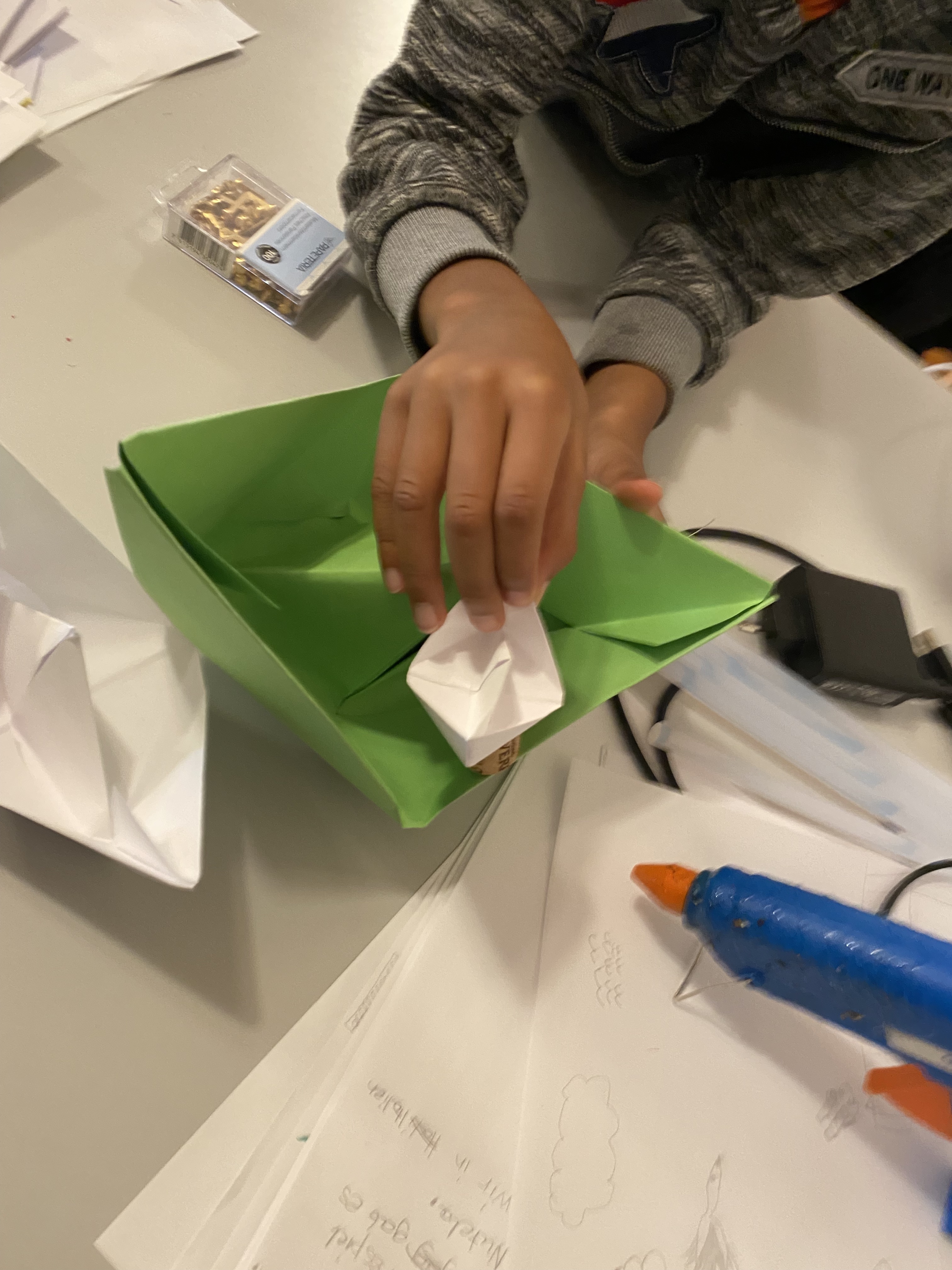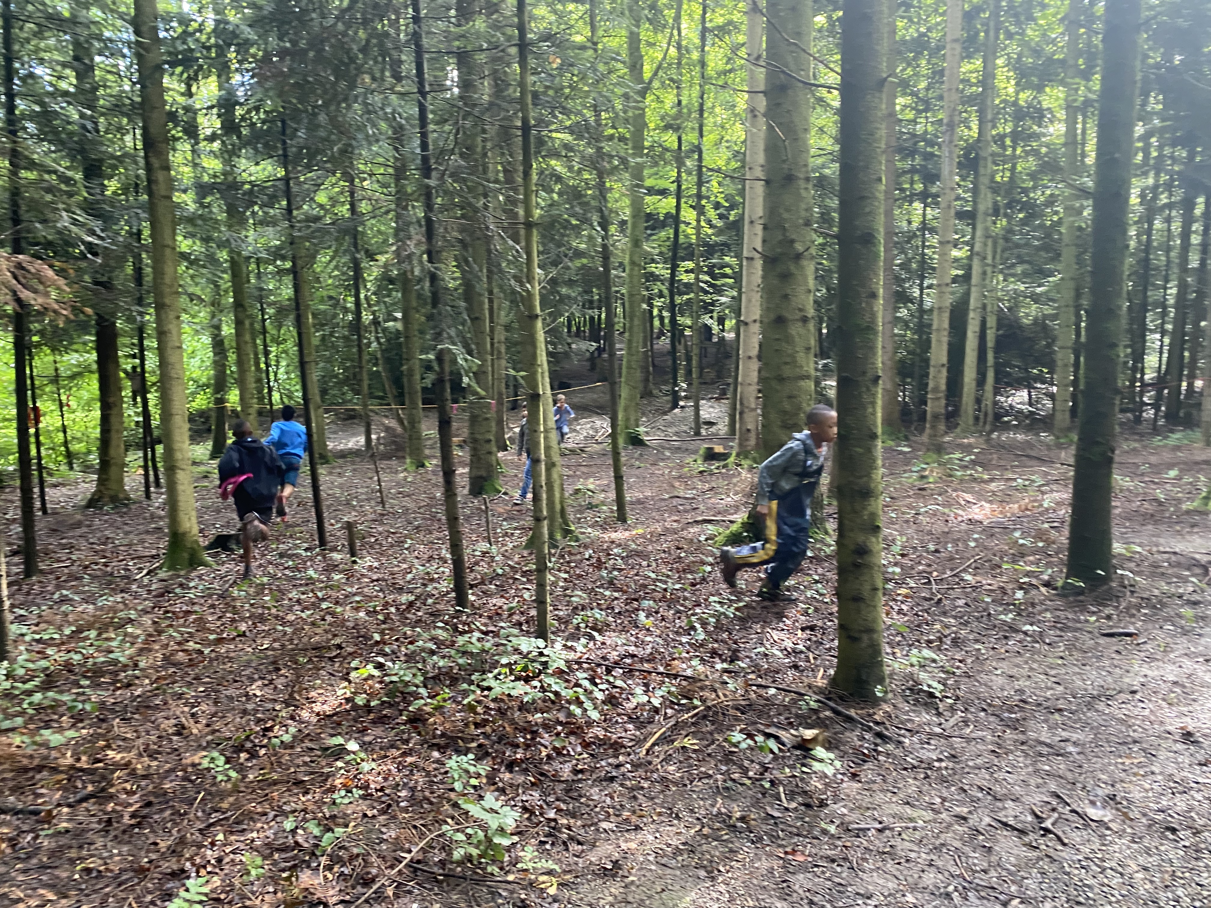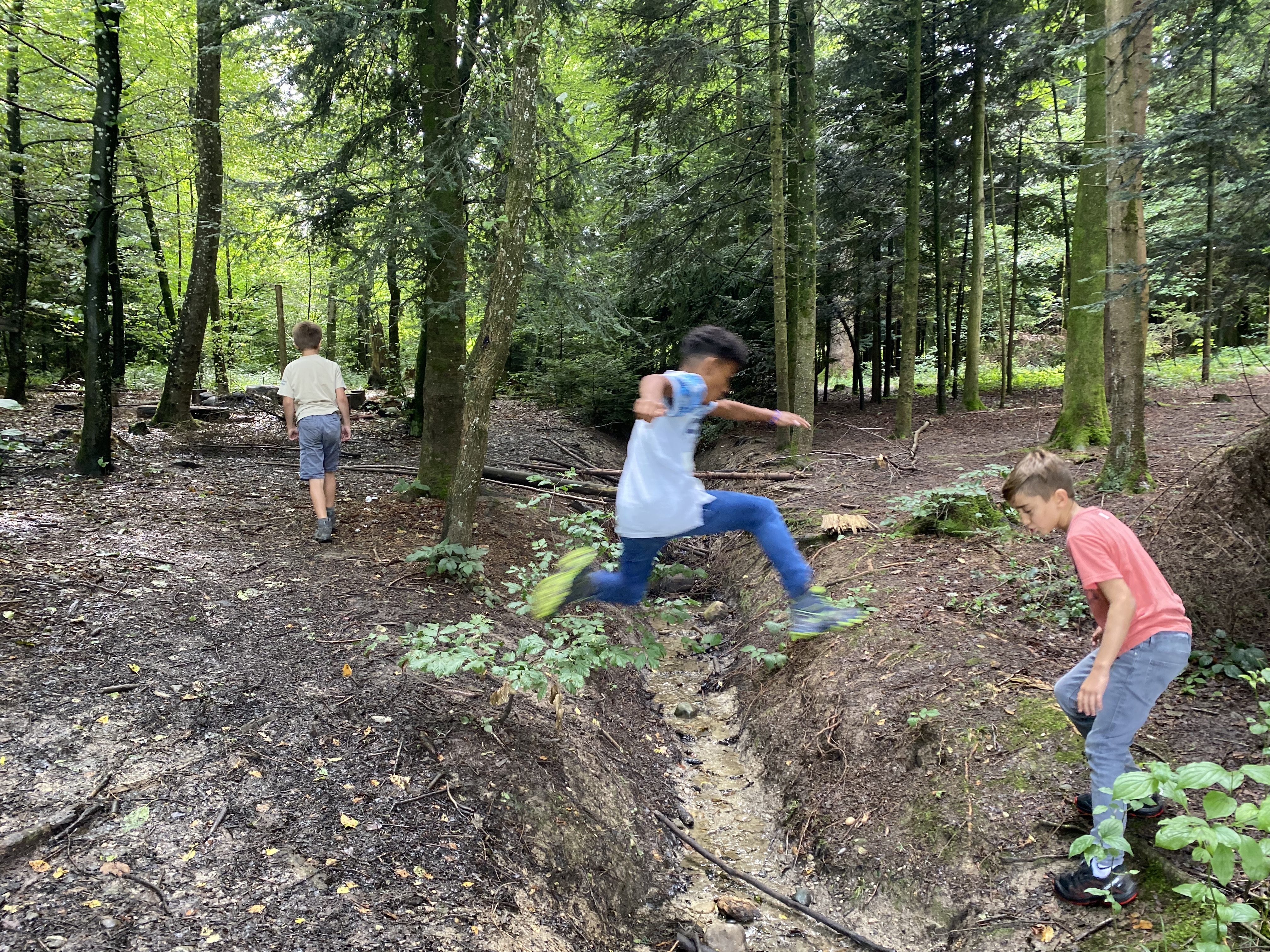 Wir sind um 7:45 Uhr aufgestanden. Wir haben ein Spiel gespielt und dann haben wir zu Morgen gegessen. Nachher sind wir in den Wald gegangen, es gab rote Bänderchen und pinke, man musste sie fersteken, es gab zwei Krokodile. Nachher haben wir Dodo gespielt. Dann gab es noch z’Nüni. Sieben Jungs sind auf den Spielplatz gegangen. Die Mädchen sind ins Haus gegangen.Vor dem Mittagessen haben wir gebastelt. Wir haben die Gipsmasken angemalt und Böötli aus Papier gefaltet.