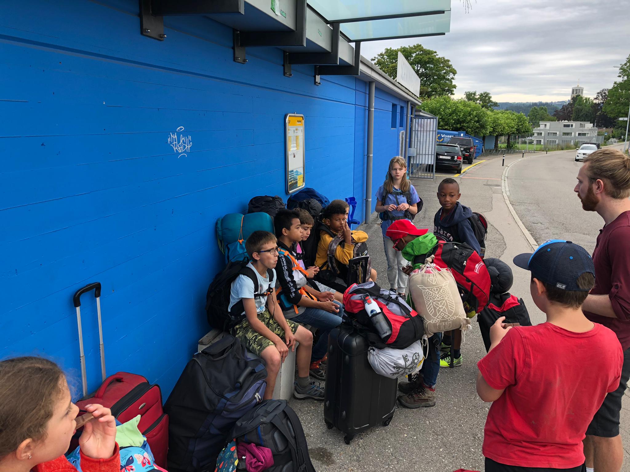 Leider ist heute der letzte Tag in unserem Lager. Wir mussten ein wenig früher aufstehen als sonst, da wir noch viel zu packen und zu putzen hatten. Direkt nach dem Aufstehen mussten wir unsere Schlafsäcke einpacken und unsere Rucksäcke vor das Lagerhaus stellen. Danach haben wir das z’morge gegessen.