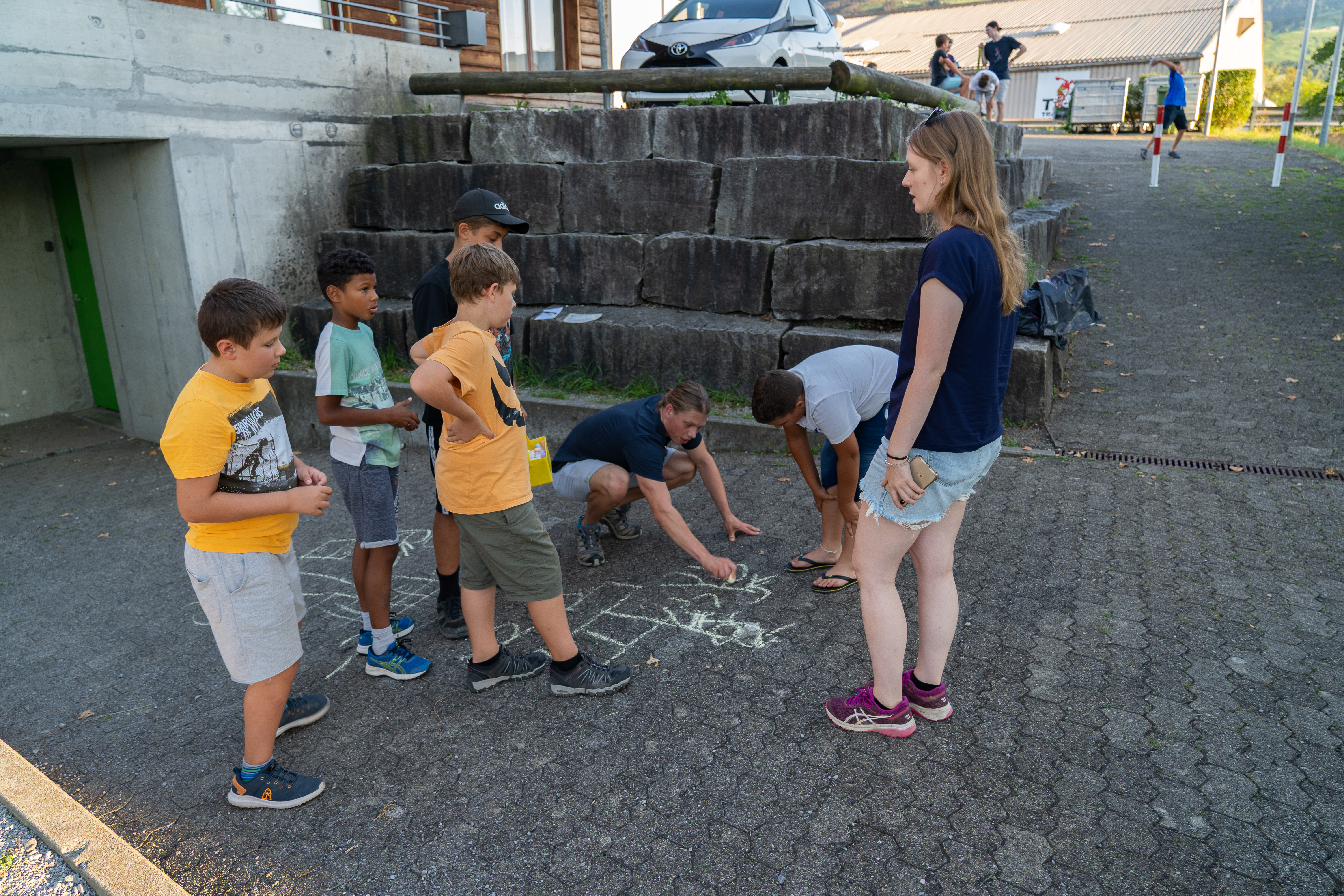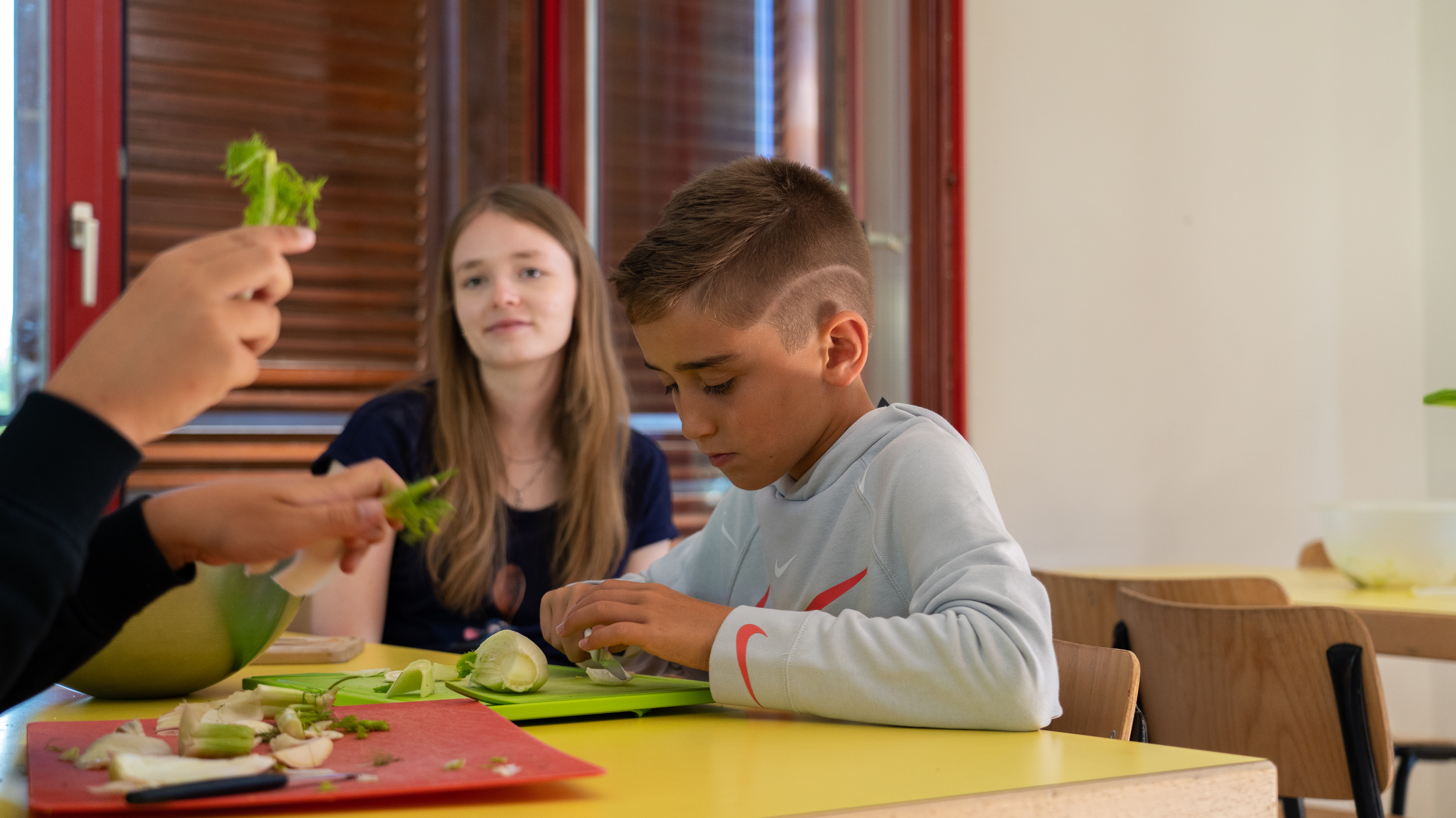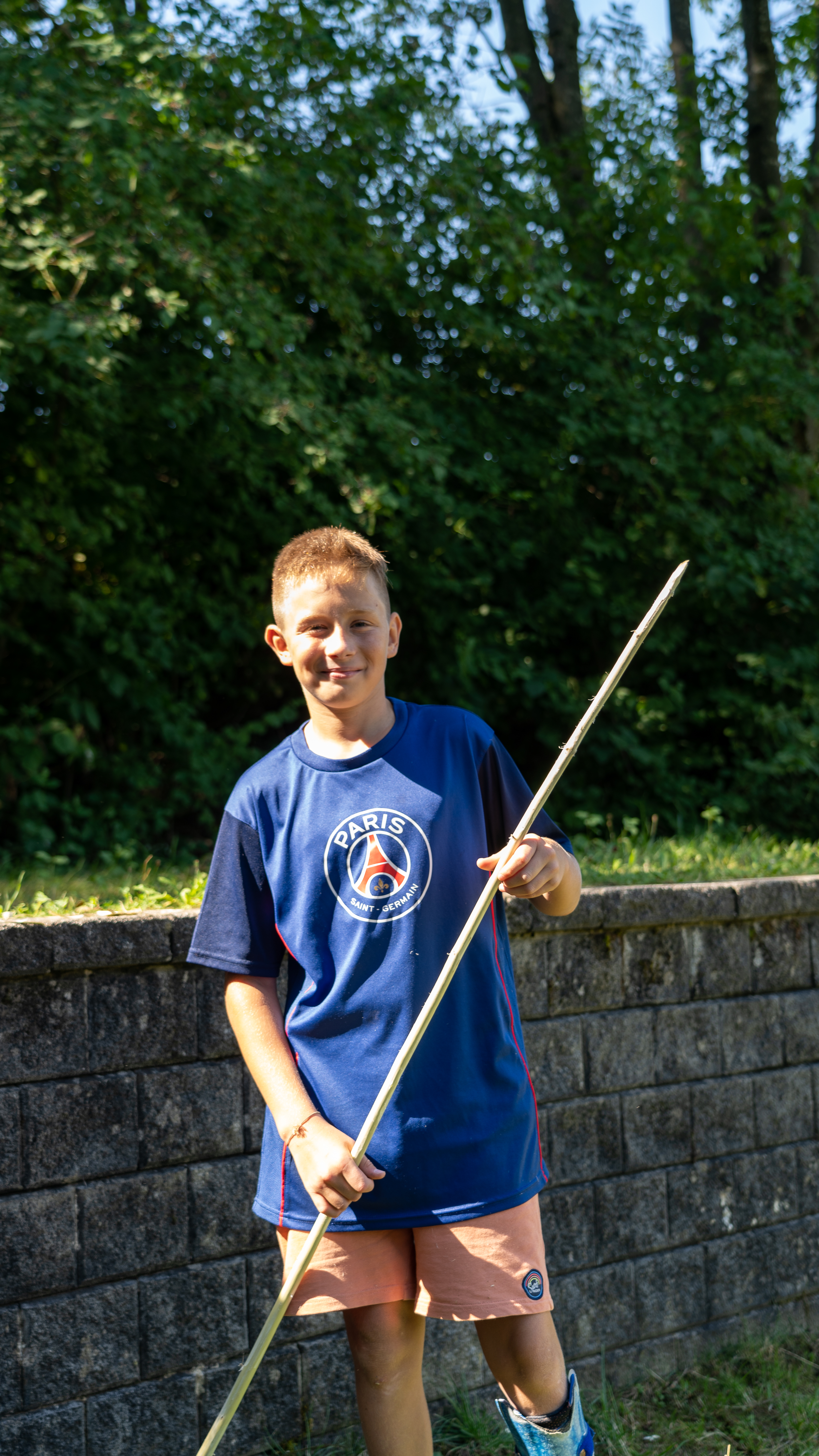 Für eine Erfolgreiche Mammutjagd braucht es natürlich einen Speer. Mit Noé und Cedric haben wir geeignetes Holz gesucht und anschliessend zurechtgeschnitzt und verziert. Auch das Gemüse für das Mittagessen haben wir selbst geschält und geschnitten. Für alle, die noch Lust hatten durften versuchen mit Steinen aus Korn selbst Mehl zu mahlen.
