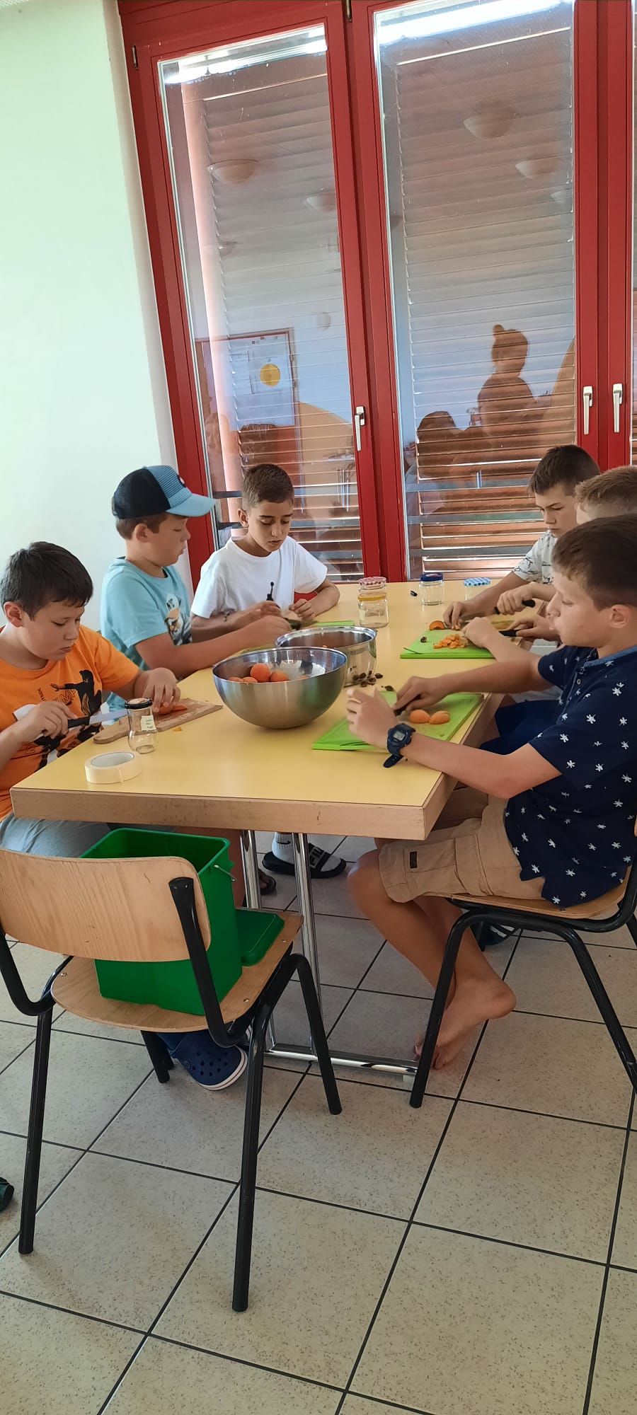 Da die alten Römer und Griechen gutes und reichliches Essen sehr genossen haben, stellten wir heute Morgen eigene Butter und Konfitüre her. Vor allem das Schütteln des Rahms ging ganz schön in die Arme!