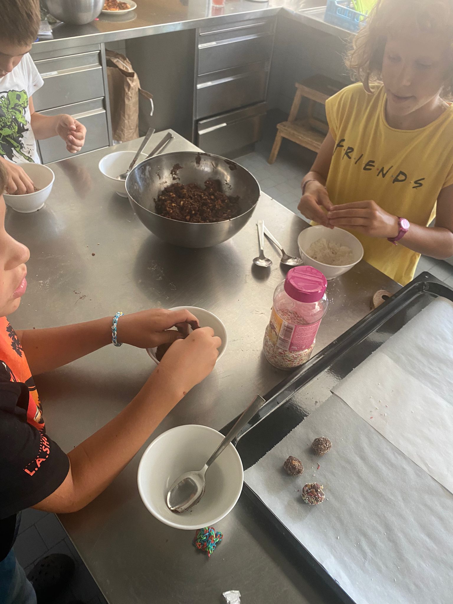 Nach dem Frühstück konnten die Kinder wählen, ob sie lieber Pralinen oder Chili-Öl herstellen oder ein Küchentuch bemalen wollen.