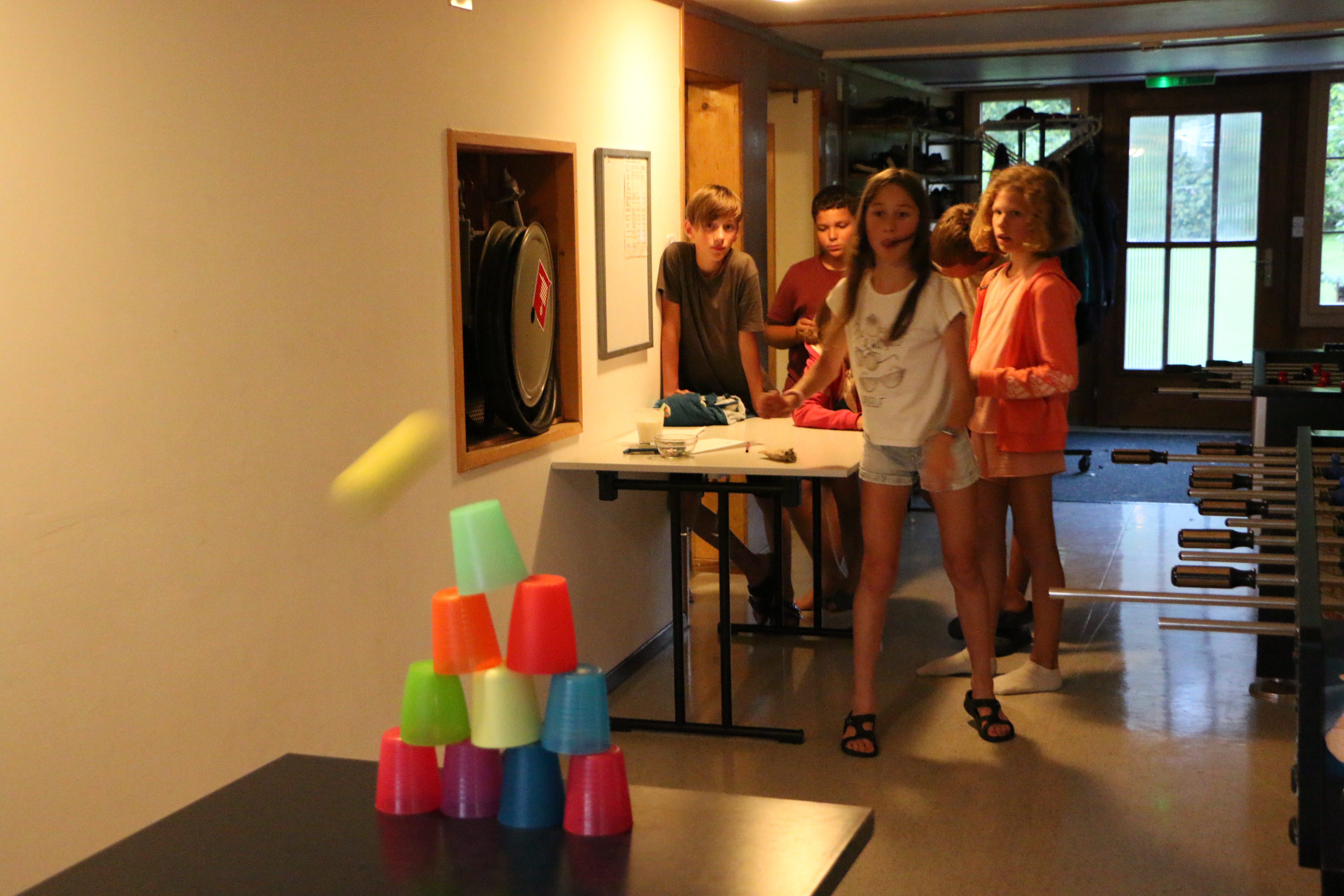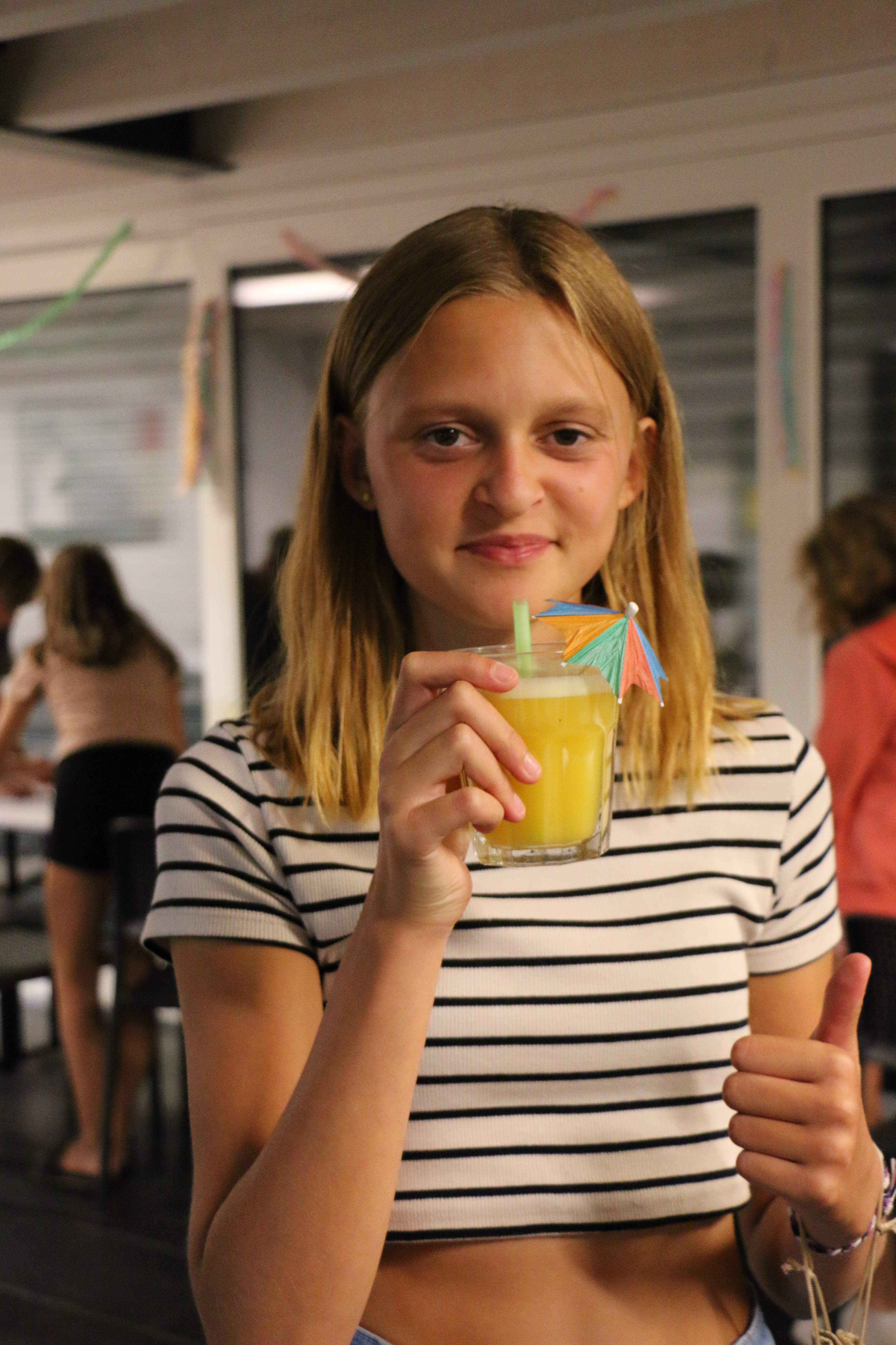 Zum Abendprogramm gab es heute ein Casino. Bei verschiedenen Spielen wie Black-Jack, Roulette, Fadenziehen oder Büchsenwerfen konnten die Kinder Spielgeld setzen. Ihre Gewinne konnten sie dann entweder an der Bar für farbige Drinks oder beim Waffelstand für Belgische Waffeln mit verschiedenen Toppings ausgeben. Sollten sie aber mehr verlieren als sie besassen, konnten sie durch Abwaschen von Geschirr oder verschiedene Challenges wieder Geld dazuverdienen. Chiara und Leonie haben das Glücksspiel sogar ganz aufgegeben und sind in den Service an der Bar und beim Waffelstand eingestiegen und haben so ihr Geld verdient.