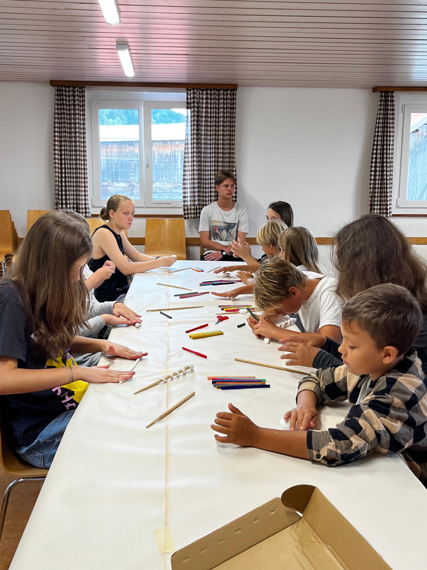 Der Bauch gefüllt kam auf einmal Ungewissheit auf. Was nun wohl auf dem Programm steht? Alle Zauberlehrer waren verschwunden, lediglich Ivana, die einte Zauberdirektorin war noch bei uns. Und dann schickte sie uns los, das Haus zu erkunden. Doch wir mussten alleine oder zu zweit gehen. Und dann war da hinter der ersten Türe auf einmal dunkel! Vorbei an Ungestallten, Geistern und sonstigem Ungeheuerlichen kämpften sich alle tapfer durch das Haus! Jetzt wissen alle wo sich die gruseligen Ecken befinden.