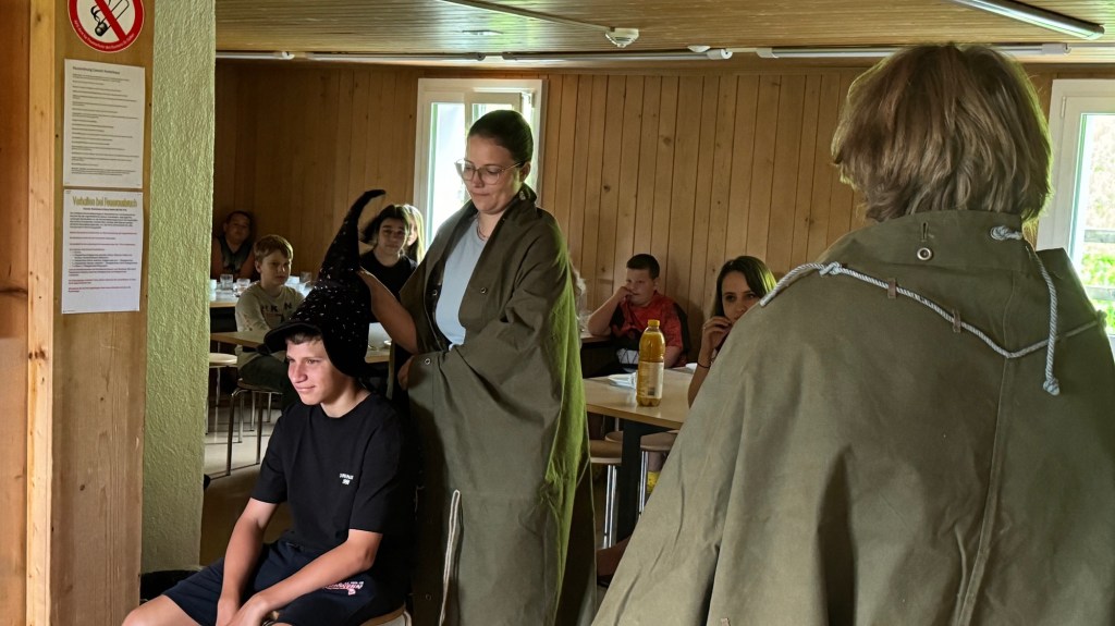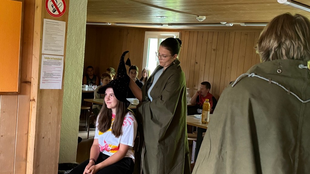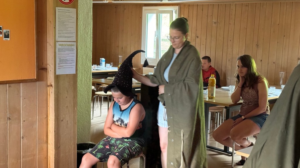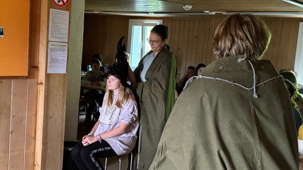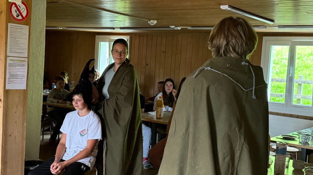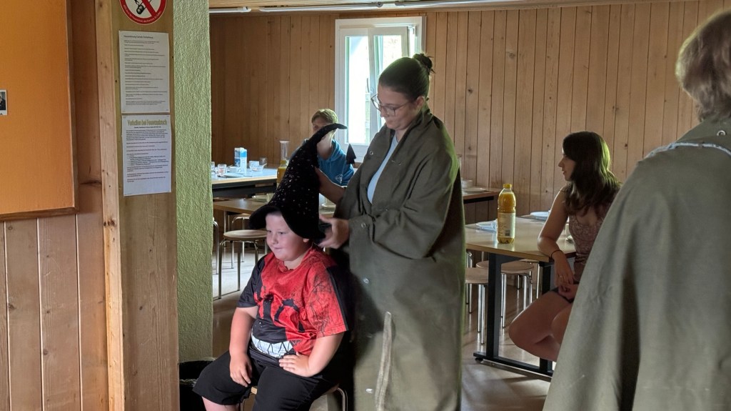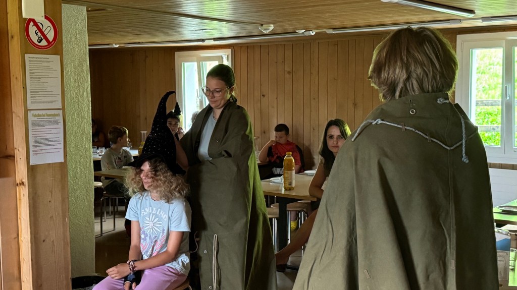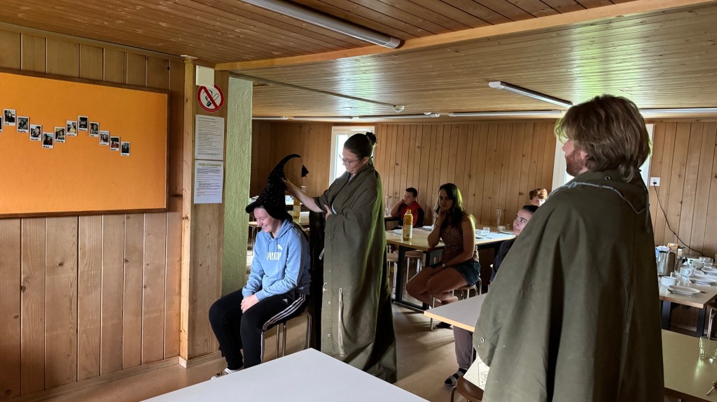 Als wir den Essenssaal betraten durften wir uns aber nicht sogleich aufs Müesli und die Konfi stürzen, denn da warteten unsere Zauberschulleiter auf uns! Ausgerüstet mit einem sprechenden Hut wurden wir alle einzeln unserem Haus zugeteilt, die Spannung war kaum auszuhalten.