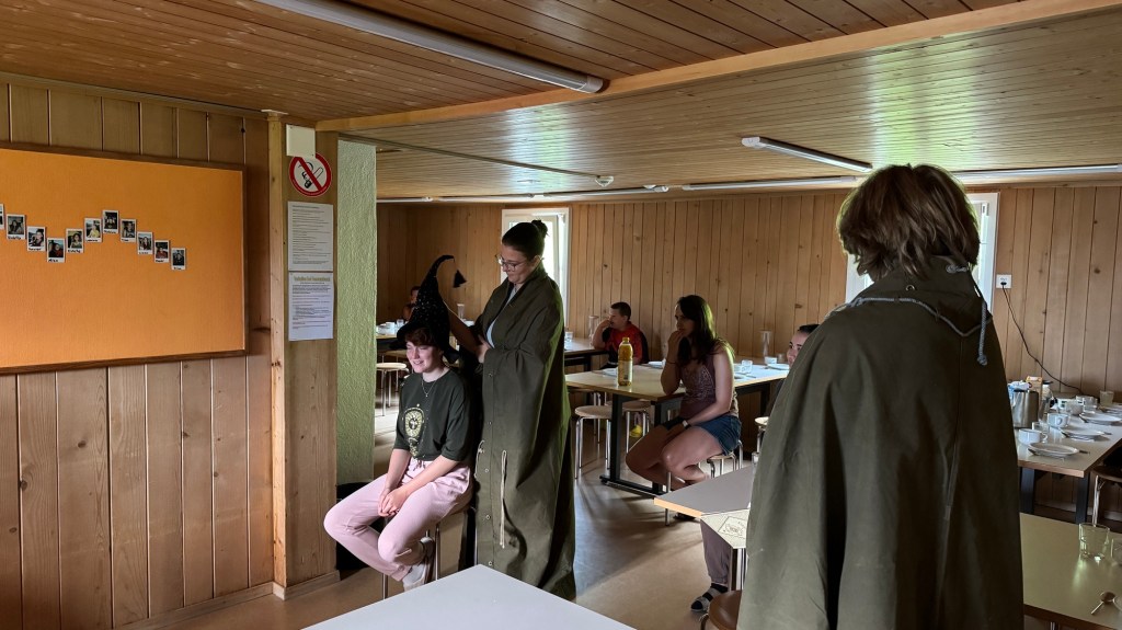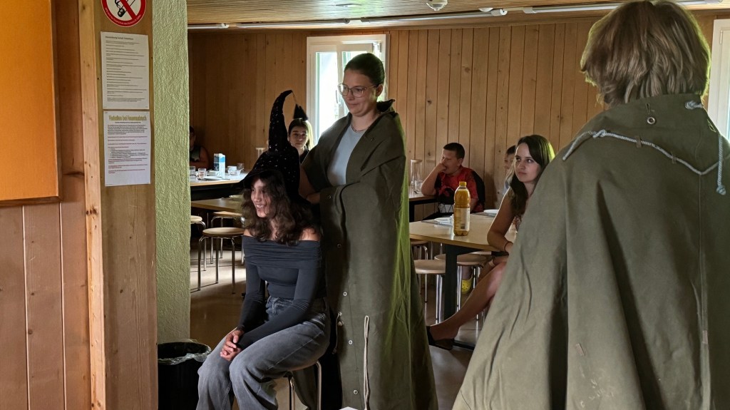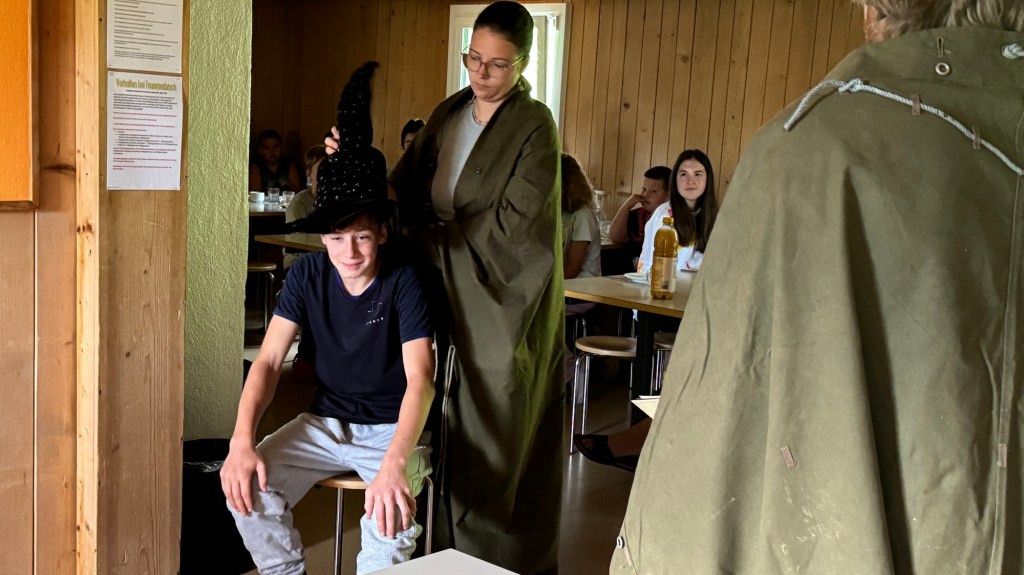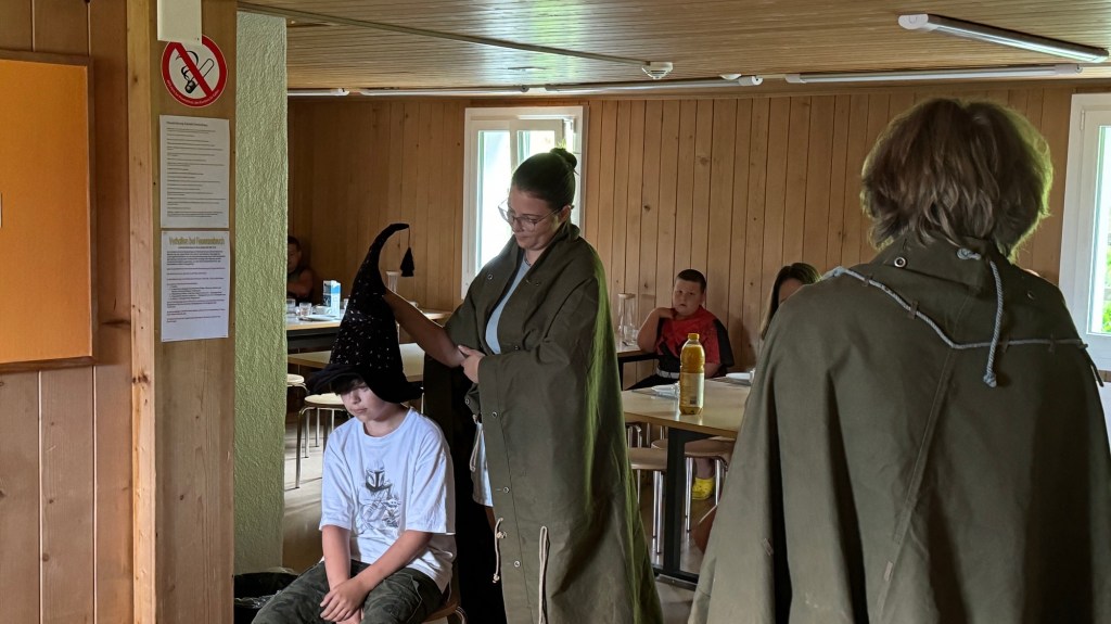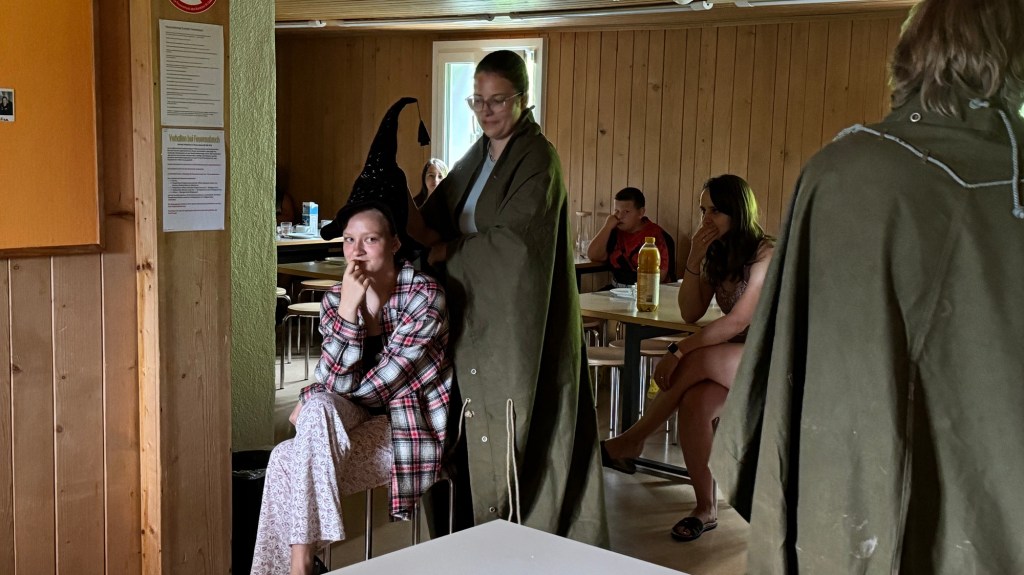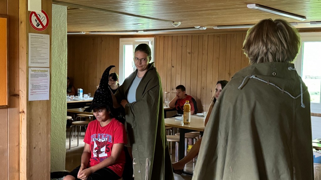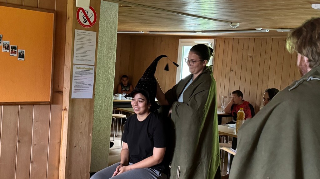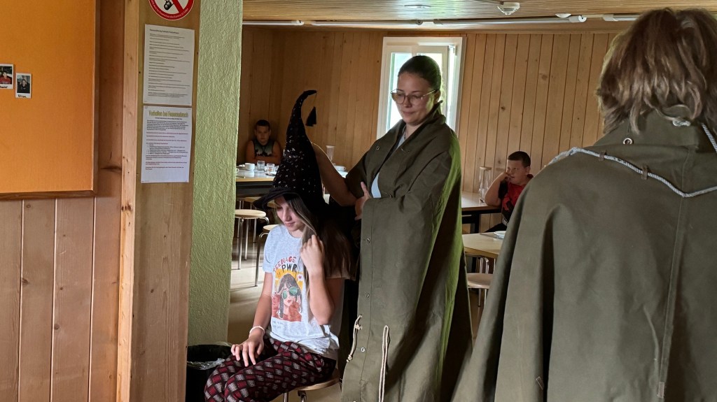 Als wir den Essenssaal betraten durften wir uns aber nicht sogleich aufs Müesli und die Konfi stürzen, denn da warteten unsere Zauberschulleiter auf uns! Ausgerüstet mit einem sprechenden Hut wurden wir alle einzeln unserem Haus zugeteilt, die Spannung war kaum auszuhalten.