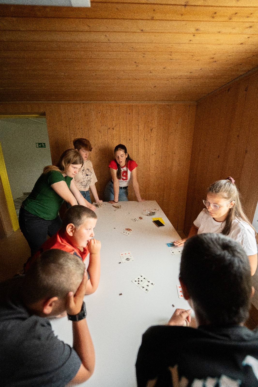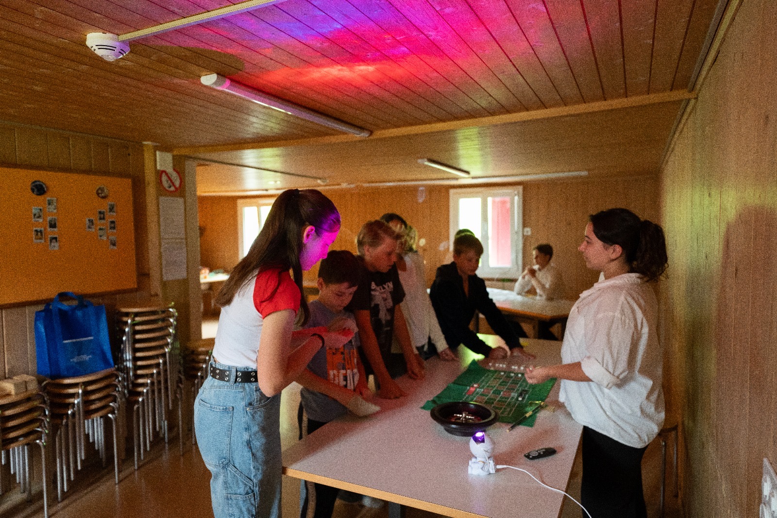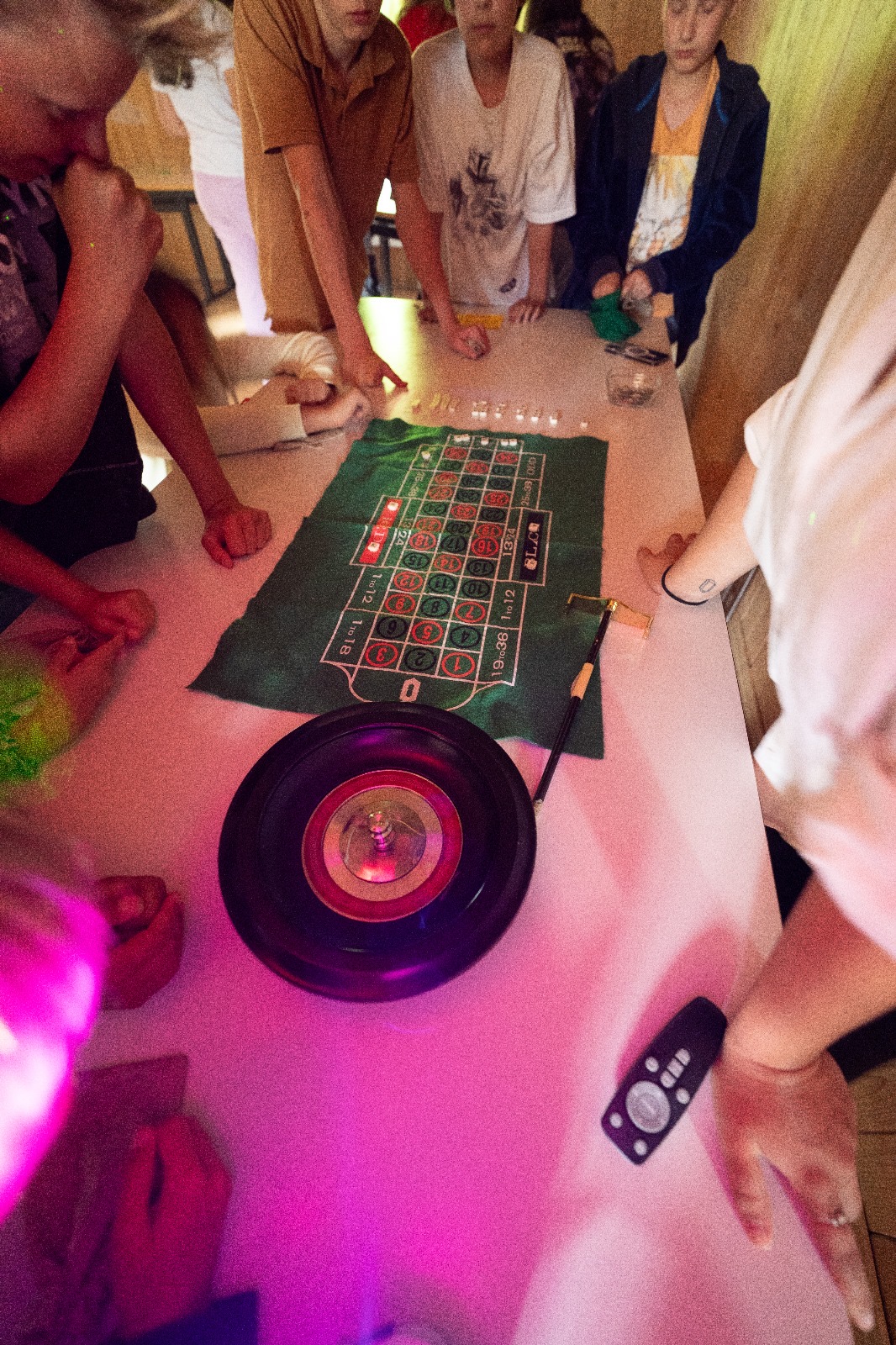 Mit dem guten Gefühl eines sauberen Hauses widmeten wir uns dann verschiedensten Aktivitäten. Wir hatten die Möglichkeit zwischen verschiedensten Spielen oder unsere Zauberstäbe noch weiter zu verschönern. Im Speisesaal wieder eingefunden erfreuten wir uns dann über ein Schlangenwirr. Und dann hiess es für alle Dresscode: Demi Chic, denn jetzt liessen wir die Würfel rollen, die Büchsen fallen und die Faden ziehen. Es war Zeit für den Casinoabend!