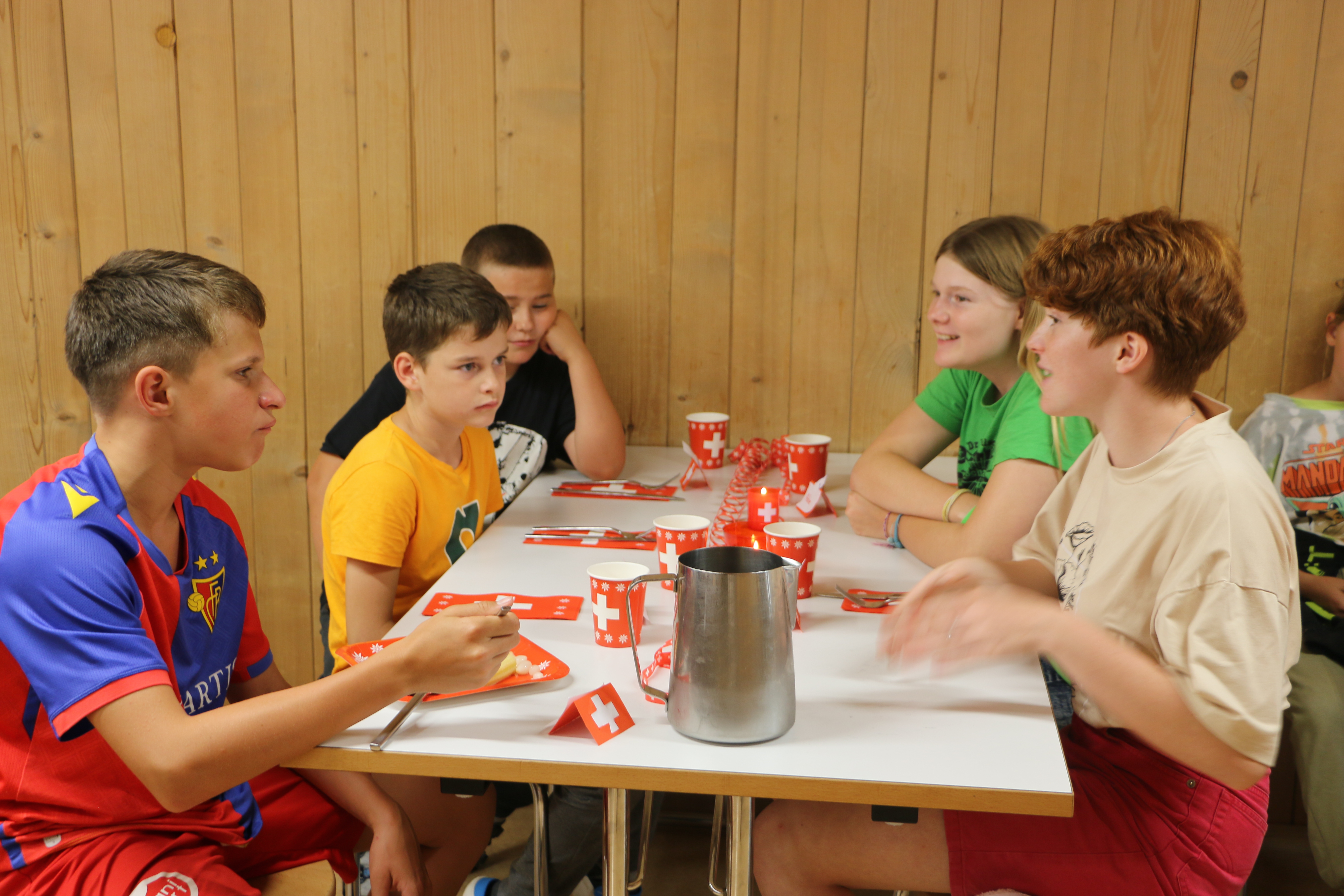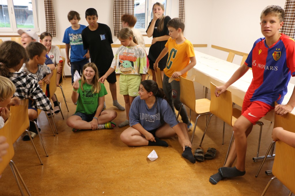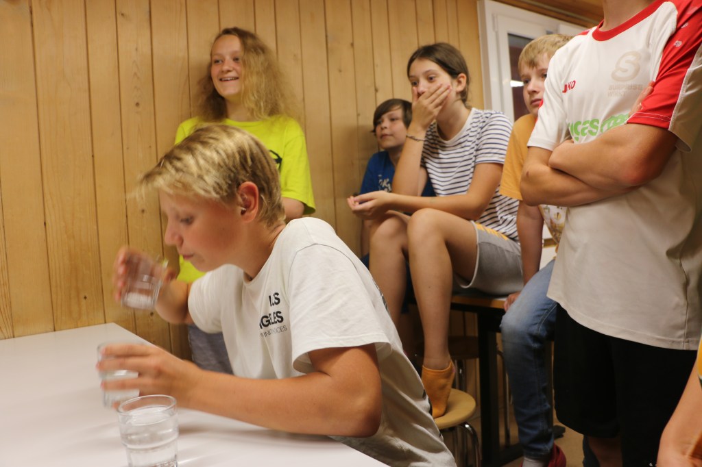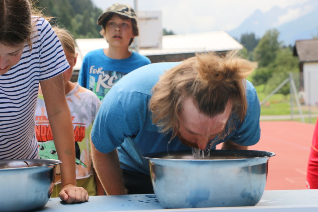 Der Morgen beginnt wie gewohnt, mit der netten Begleitung von Peter beim Frühstück. Doch es liegt eine Spannung in der Luft, irgendetwas wird anders sein heute. Und nach dem Essen liessen die Leiter dann die Bombe platzen. Denn es war Zeit für den Wettkampf aller Wettkämpfe: Leiter vs. Kinder!
