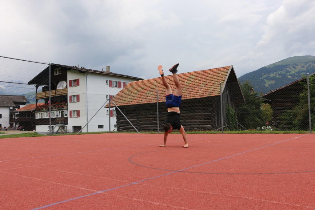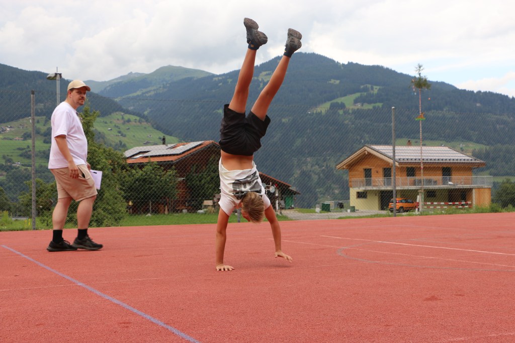 Das dritte Duell war verkehrt. Denn es ging darum, dass jeweils jemand aus dem Team länger den Handstand halten kann als sein Gegenüber. Und obwohl beide Seiten eine bravouröse Leistung vollbrachten ging der Fuss des Leiters nicht zuerst runter. Der dritte und somit siegbringende Punkt. Schade.