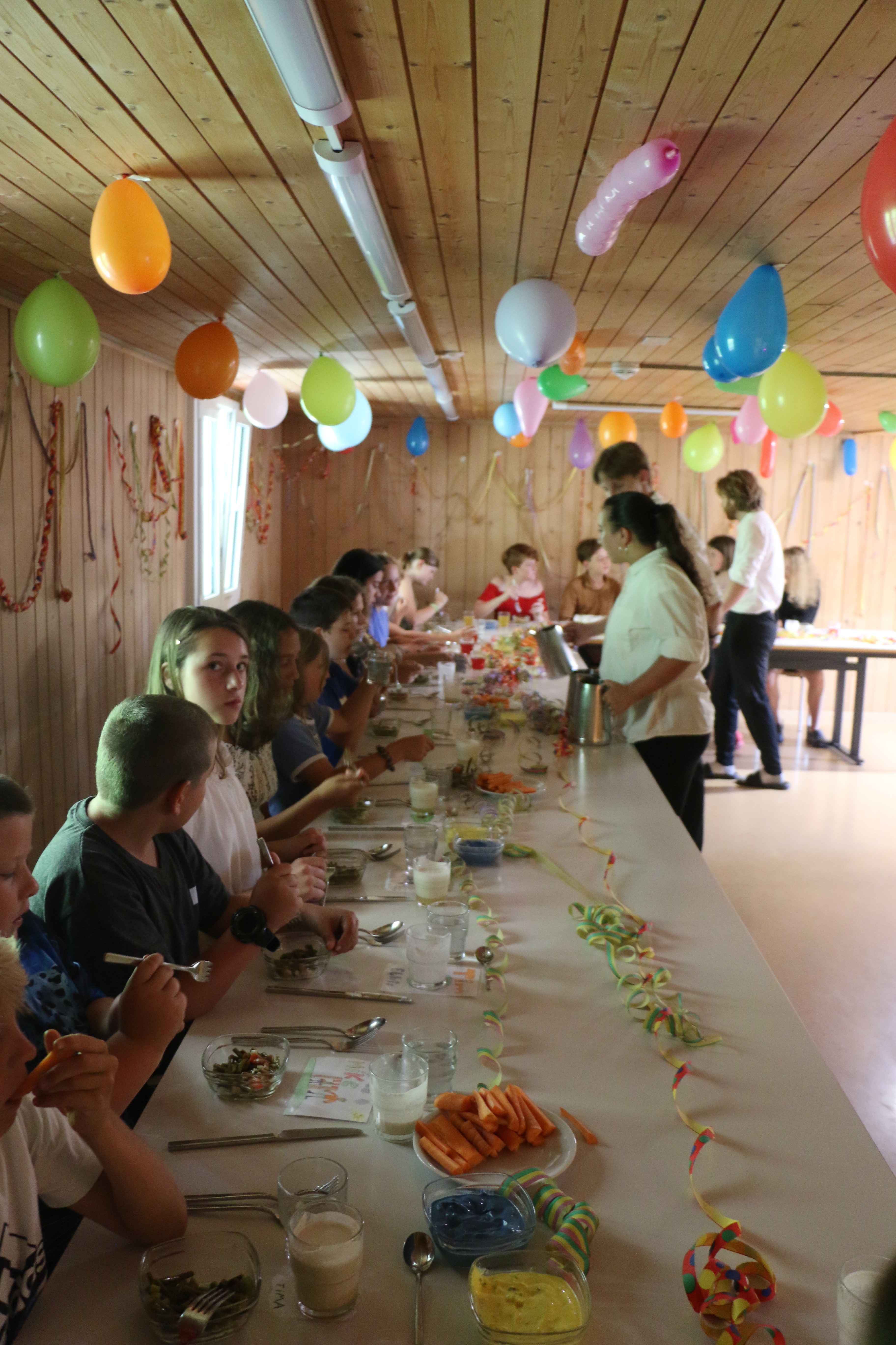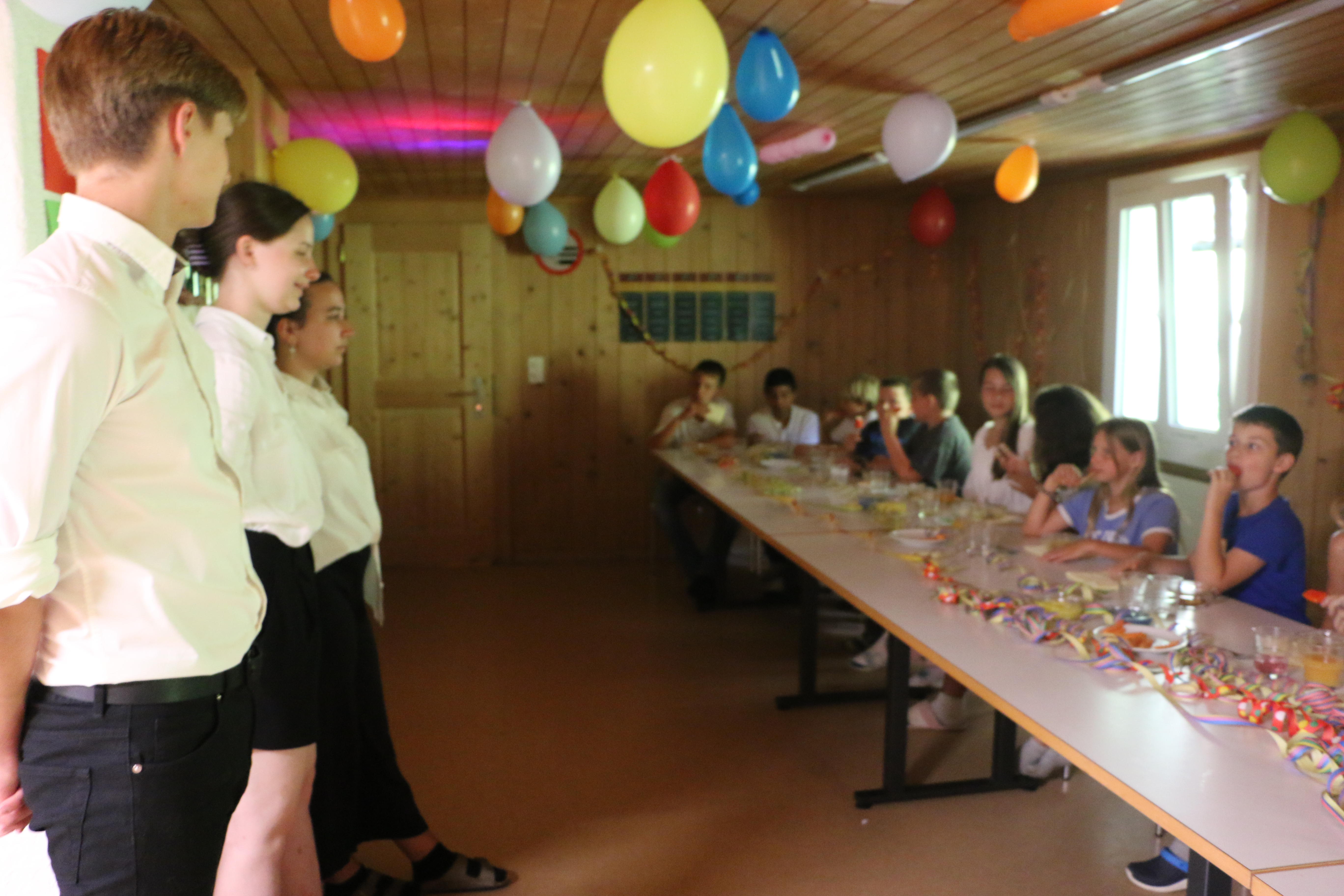 Am Ende der kulinarischen Wunderreise wurden wir nochmals vom gesamtem Team empfangen und wir gaben ihnen den Applaus des Lebens! Was für ein gelungenes Festmahl! Nach kaum stoppendem Geklatsche durften wir noch die vier Kinder loben, welche sich am meisten für ihre Häuser eingesetzt haben. Wir gratulieren hier Estelle, welche für Honigkralle 38 Punkte gesammelt hat, Elisa, für Schwingfeder und Liana, für Rotschwanz, beide mit 31 für ihre jeweiliges Haus und Dascha, mit 24 Punkten für Haus Bockhorn.
