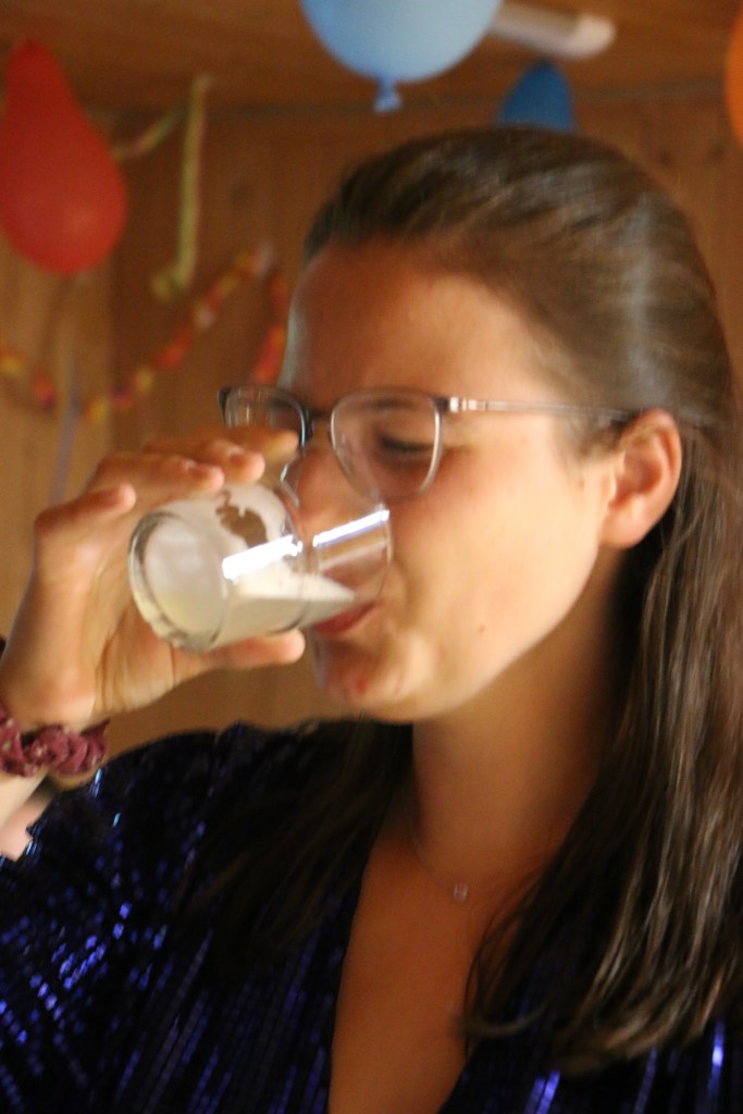Und dann ging das Spektaktel los. Bereits um 17 Uhr wurden wir wieder in den Speisesaal gebeten. Zu passender Musik erhielten wir Einlass und wurden von der Leiterequipe, in adäquatem weiss/schwarzem Tenue mit Pre Dinner Mocktails empfangen. Am langen Tisch platz genommen durften wir mit einem Aperitif names Legume Maigre starten. Dazu erhielten wir von der Leitung eine Dankesrede für die vergangene Woche, darin integriert kam es dann auch noch zur Siegerehrung des Häuserwettkampfs.