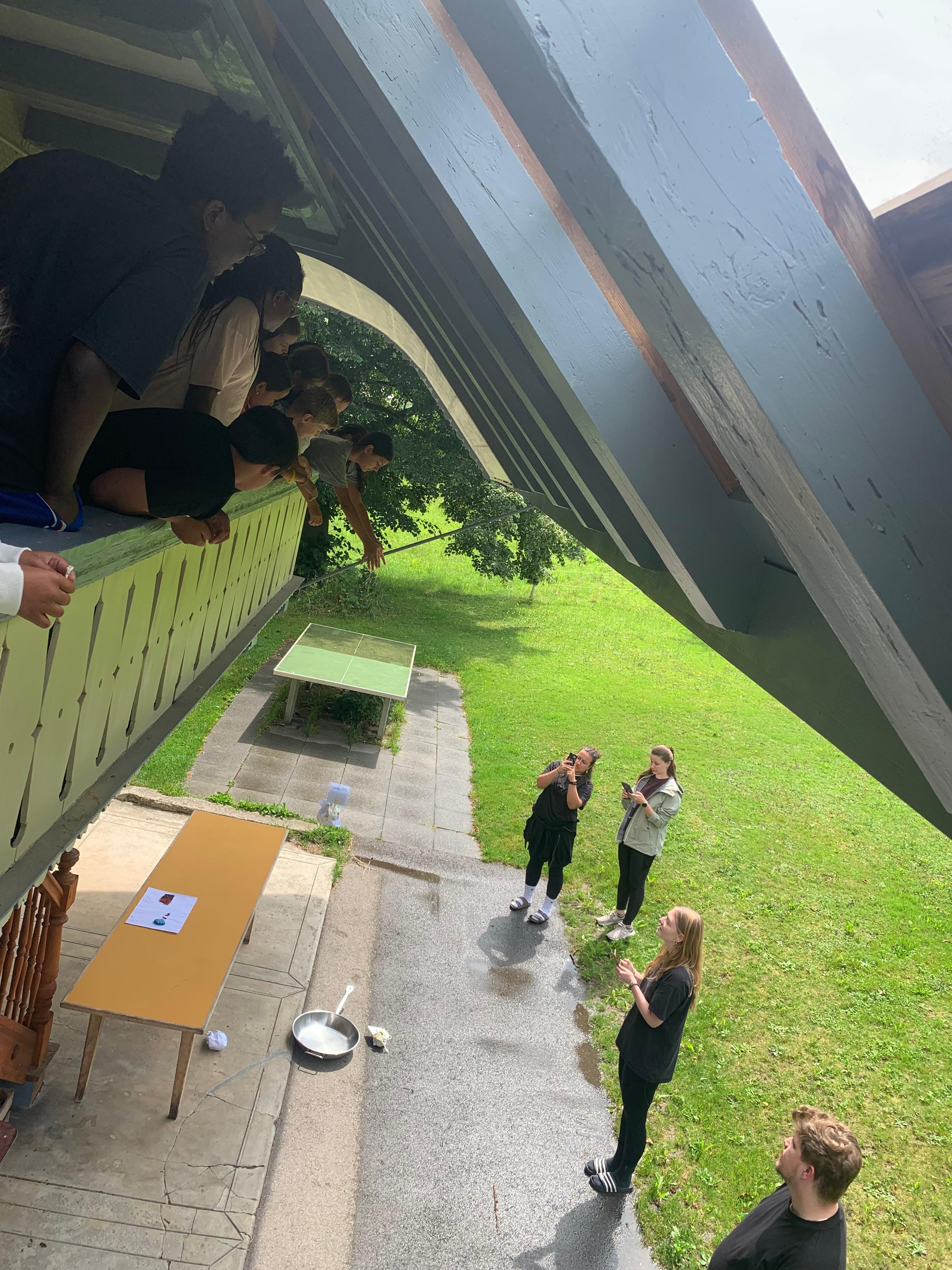 Kaum auf dem neuen Rund angekommen wurden wir schon mit der ersten Aufgabe betreut: Wir mussten uns Leichtigkeit und unseres technische Können zur Schau stellen. Denn auch wenn hier die Anziehungskraft nicht so gross ist, so müssen wir doch noch sicherstellen, dass unsere Lebensmittel, wie zum Beispiel unsere Eier, sicher auf dem Mondboden ankommen.