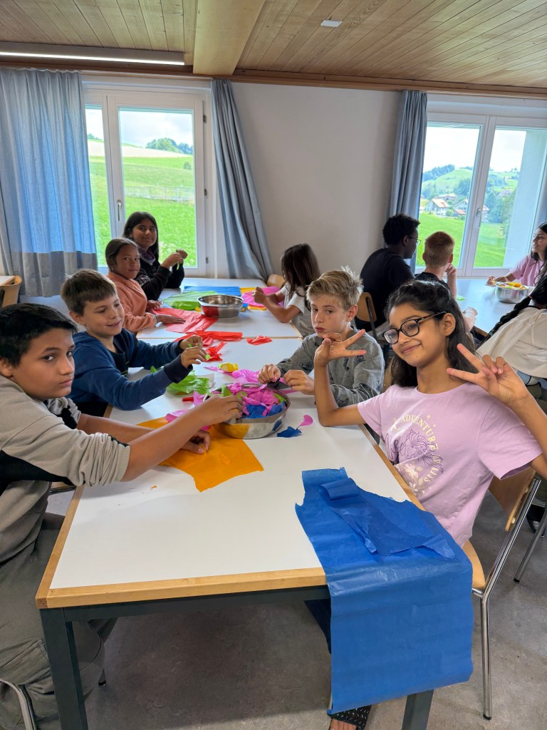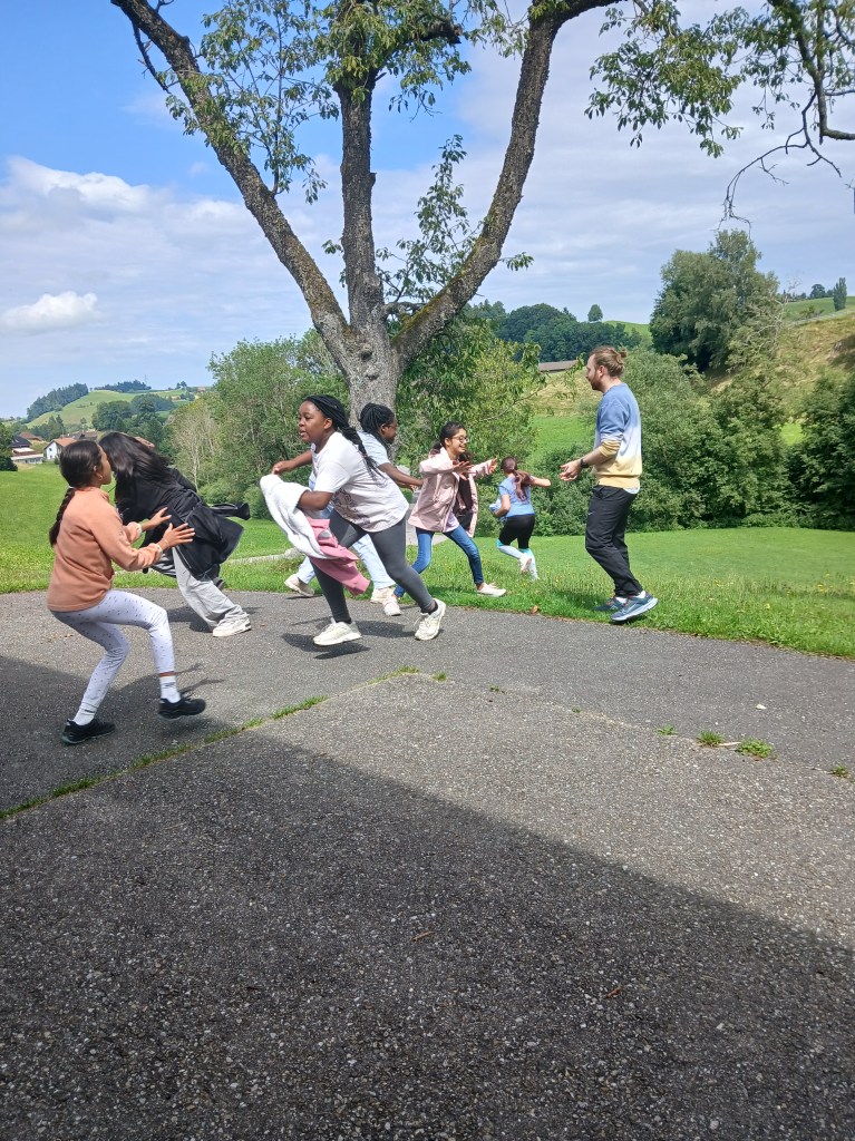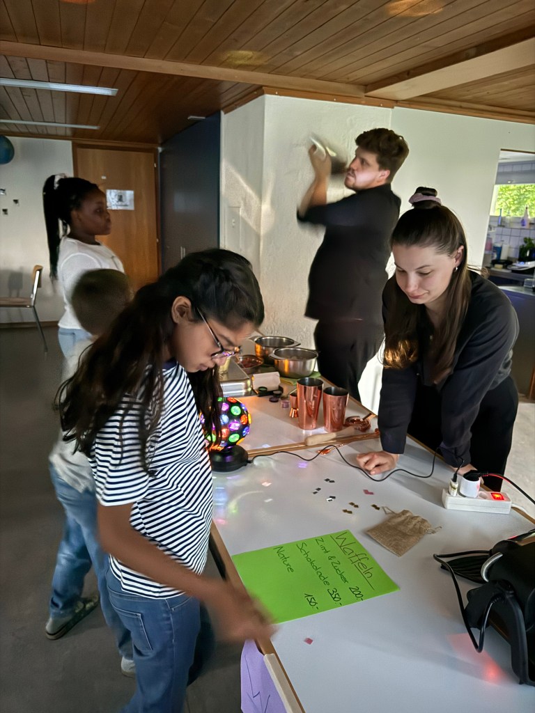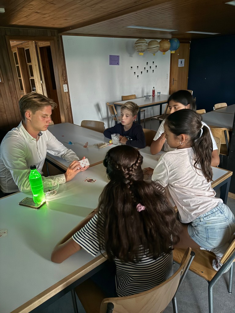 Verstecken ist ja auch eine Fähigkeit, die wir nicht vermissen dürfen im Weltall. Umso besser, dass wir das den ganzen Nachmittag gelernt haben. Aber eine chemische Überraschung hat uns aus dem sportlichen Spass gerissen, denn danach lernen wir noch, wie wir am besten diverse Stoffen mischen kann.