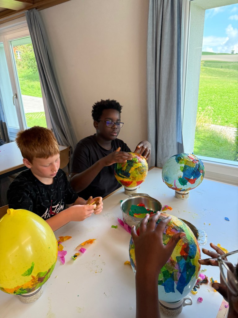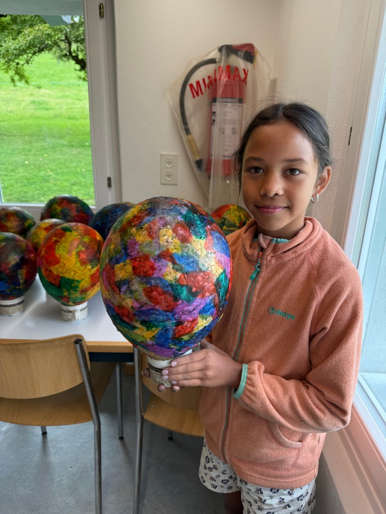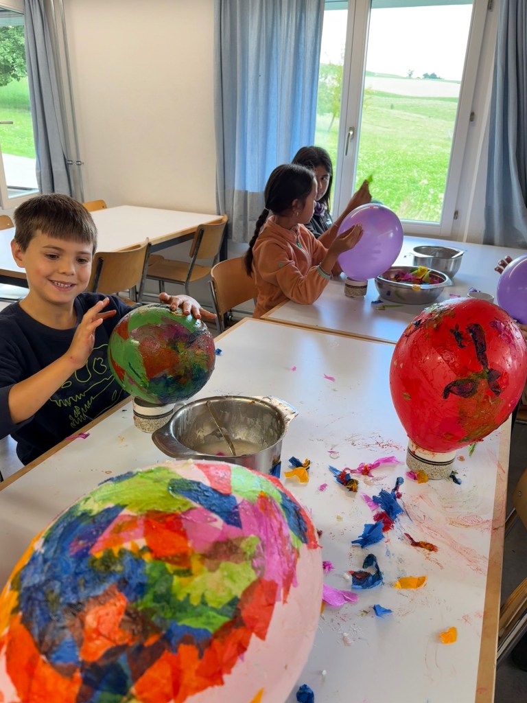Heute bewegen wir uns rund um die Planeten Saturn und Uranus. Am Morgen widmen wir uns dem Kreativen und verarbeiten unsere Erkenntnisse der bisherigen Himmelskörper. Das machen wir indem wir versuchen, mit Papier und Ballonen darzustellen, wie wir uns die bisherigen Planeten vorstellen.